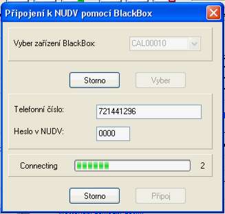 Prvním krokem připojení ke vzdálenému NUDV je výběr BlackBoxu - podle výrobního čísla CALxxxxx (k PC je možno mít připojeno více BlackBoxů)