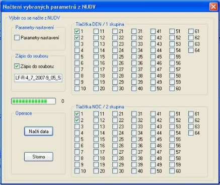 Čtení parametrů z NUDV je vzhledem k době přenosu dat možno zkrátit výběrem parametrů, které chceme načíst.