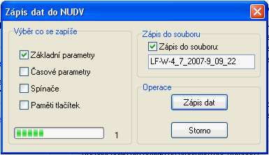 Zápis parametrů do NUDV je vzhledem k době přenosu dat možno zkrátit výběrem parametrů, které chceme zapsat.