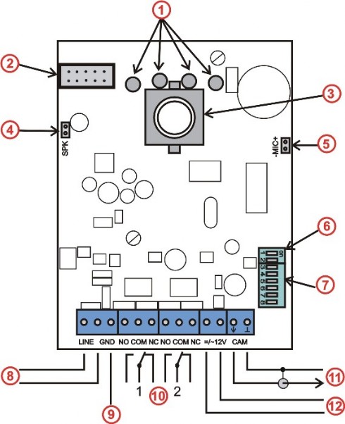 1 - Osvětlení kamery - infra LED, přisvětlují prostor před kamerou a to pouze po dobu činnosti kamery, lze vypnout (viz. bod 7) - pouze verze s kamerou /C