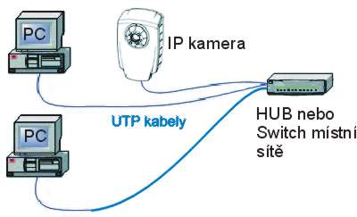 Pro softwarové připojení (připojení se na kameru z PC) je třeba mít kameru připojenou do počítačové sítě - viz. obrázek vedle