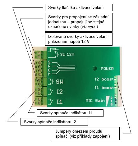 Umožňuje paralelní zapojení více hlásek, např. pro komunikaci pod kabinou a nad kabinou výtahu.