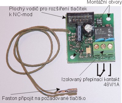 Tento rozšiřující modul umožňuje ovládat další zařízení od zmáčknutí vybraného tlačítka NUDV. Napájení modulu se zajistí připojením plochým vodičem, kterým se propojují NC-mod, podmínkou je mít k základní desce napáječ 12V. Tento kabel je upraven tak, že je delší a obsahuje 3 nalisované konektory, stejné provedení je pro připojení externího reproduktoru, nebo IP kamery.