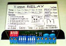 Tento modul vyžaduje střídavé nebo stejnosměrné napájení v rozsahu 8 – 24V. Vstup reaguje na stejnosměrné nebo střídavé napětí v rozsahu 5 – 24V. Tento vstup je galvanicky oddělený a je možno jej nastavit tak, že reaguje na přivedení napětí nebo odpojení napětí. Kontakty relé jsou galvanicky oddělené od ostatních obvodů a jsou značeny dle zvyklostí COM=společný vývod, NC= kontakt v klidu spojený a NO= kontakt v klidu rozpojený. Nastavení se provádí pomocí DIP přepínačů a lze nastavit nezávisle 4 režimy (Mode), nastavit čas sepnutí relé (Time) od 1sec do 15 sec a zpoždění (Delay) od 1sec do 30sec. Činnost je indikována červenou LED, po připojení napájení několikrát krátce blikne (autotest) a při provozu svítí, když je spínač relé aktivní.