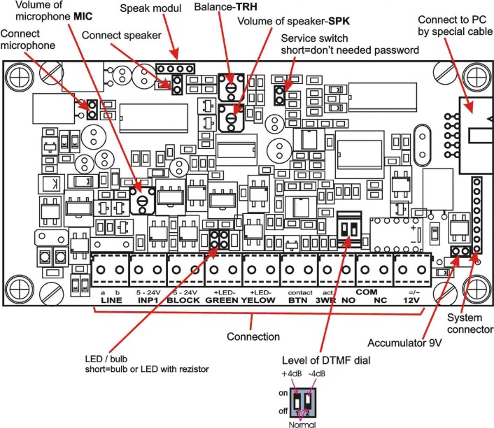 úroveň vysílání DTMF je nastavitelná přepínači +/- 4dB