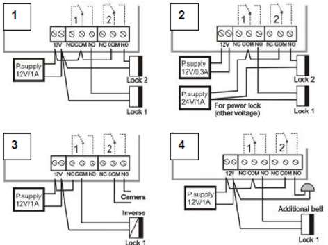 1. Základní zapojení - 2 elektrické zámky a možnost ovládat dvoje dveře