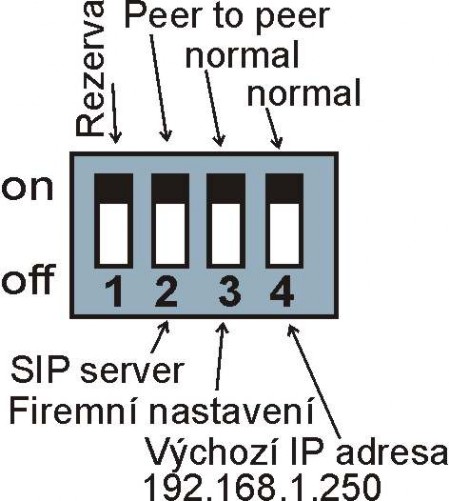 DIP přepínač 3 a 4 po naběhnutí VoIP modulu se musí přepnout zpět do polohy "on" jinak se nově nastavené parametry nebo nová IP adresa po restartu modulu přepíší zpět na výchozí.